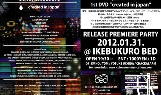 来る2月10日(金)に、話題のドメスブランド、Color Communicationsの1stビデオ 『Created in Japan』のプレミア試写会の第2弾が東京都中野のクラ…