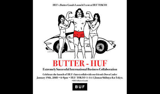 オーストラリア発のスケートライフブランドButter GoodsとHUFのコラボを記念したイベントが1月19日(金)に渋谷のHUF TOKYOにて行われる。 オリジナリティ溢れる両…