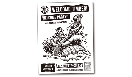 Element所属のアーティスト、TIMBER!ことチャド・イートンの来日が決定。 4月19日(木)にElementジャパンチームが埼玉県川口のBASHI BURGER CHANC…