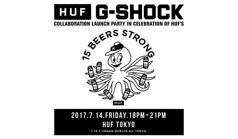 HUFのブランド設立15周年を記念したG-SHOCKとのコラボウォッチのローンチイベントが明日7月14日(金)に東京、名古屋、大阪で同時開催。HUFとG-SHOCKの世界観を体感しに是非ご来場ください。