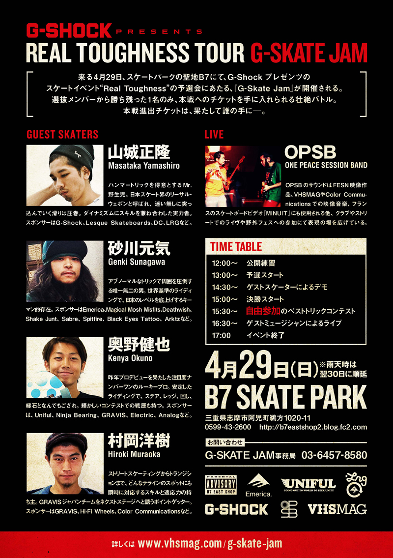 4月29日にスケートパークの聖地B7にて、G-Shockプレゼンツのイベント