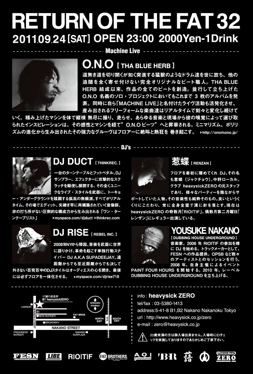 出演:O.N.O(THA BLUE HERB)、DJ DUCT(THINKREC.)、DJ RISE(REBEL INC.)、