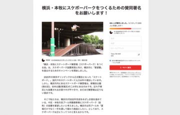 スケーターが手を取り合ってパークの設置実現のために頑張ろう! ということで、賛同や署名はこちらのページから。