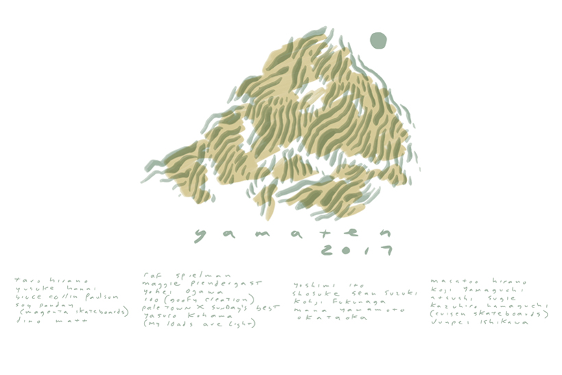 Taro Hirano、Yusuke Hanai、Bruce Collin Paulson、Soy Panday (Magenta Skateboards)、Dino Matt、Raf Spielman、Maggiee Prendergast、Yohei Ogawa、100 (Goofy Creation)、PALE TOWN × SUNDAY’S BEST、Yasuro Kohama (My Loads Are Light)、Masatoo Hirano、Koji Yamaguchi、Atsushi Sugie、Kazuhiro Hamaguchi (Evisen Skateboards)、Junpei Ishikawa、Yoshimi Ito、Shosuke Sean Suzuki、Kohji Fukunaga、Mana Yamamoto、OKATAOKA