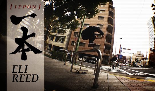 ELI REED さすがは東海岸出身のスケーターだけあり、着眼点が違う。バンクやステアには目もくれず、 公園入り口の車止めをいきなりヒッピージャンプ越え。一本! では…