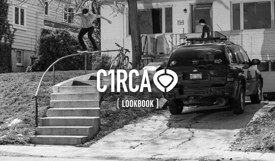 ニーン・ウィリアムス、デイビッド・グラヴェット、エイドリアン・ロペスらのシグネチャーシューズを中心に展開するC1RCAの最新ルックブック。モノクロで統一されたライディングカットが硬派な雰囲気を演出。