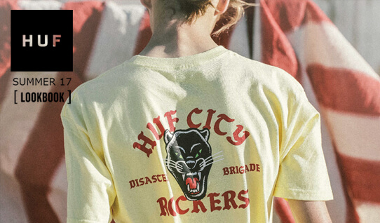 HUFのSpring 2017ルックブックが到着。ブランドのルーツであるスケートやストリートに加え、’70〜’80年代のパンクやレゲエカルチャーにインスパイアされたラインナップをチェック。