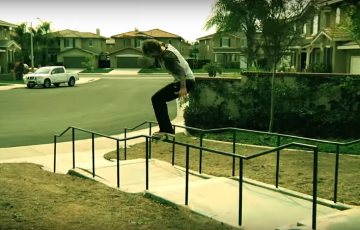 ノイジーなギターサウンドに合わせ、フィギーが一流のハンドレールスキルを披露。