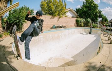 スケートチーム4名がピックした新作アイテムを身に着けド派手なライディングを披露。