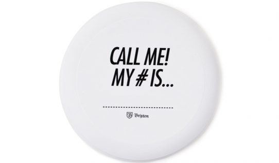 Brixtonからリリースされたユニークなアイテムをご紹介。 なんとこちらのフリスビー、CALL ME! MY # IS…という文字とともに電話番号を書くスペースが空いています。 …