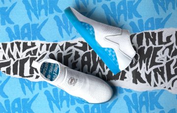 つま先のサイドやかかとのガード部分にはFAのフォントでNAKの文字をフィーチャーするほか、耐久性と通気性に優れたパンチングレザーをアッパーに採用。