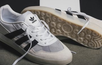 adiStar FencingにインスパイアされたAloha Super。ニュートラルなカラーリングで落ち着いた雰囲気ながら通常よりも太いスリーストライプスが主張。アッパーにヌバックとレザーを使用して強度を高め、ヒールにはマーク・ゴンザレスのイニシャルが配置。¥12,960
