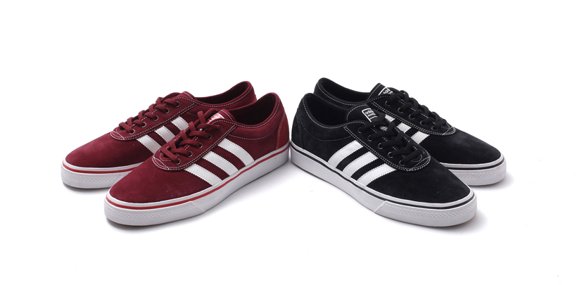 Adi Easeのアッパーにスエードを採用したモデル。バーガンディとブラックというカラーリングは使い勝手抜群です。