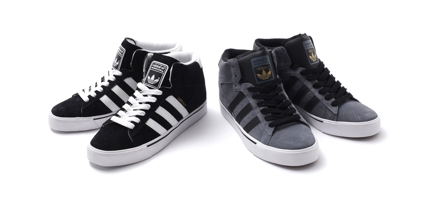 adidasのマスターピース・シューズのひとつであるCPのミッドカットモデル。CP Vulc Mid。ともに¥12,600