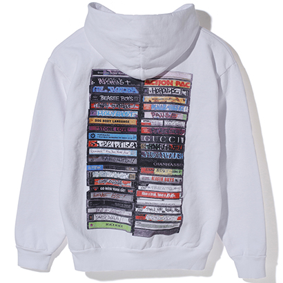 フロントとバックにカセットテープのプリントを施したフーディ。¥18,360