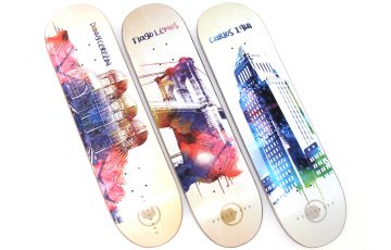 写真左から、Water Colorシリーズのダニー・セレジーニ(8×31.3 / 8.12×31.5)、ティアゴ・レモス(7.75×31.2 / 8×31.3 / 8.12×31.5)、カルロス・イクイ(7.8×31.3 / 8×31.3)。すべて¥10,692