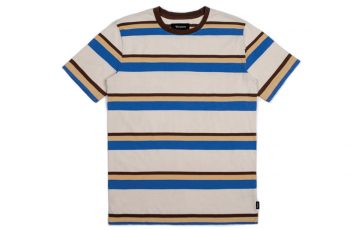 ブラウンを基調としたマルチパターンボーダー柄に採用したブルーがアクセント。Clive Washed SS Knit ¥7,020