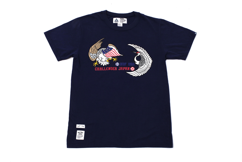 HUFとChallengerのコラボTee。アメリカを象徴するイーグルと、日本を象徴する鶴のプリントがアツい。¥6,090