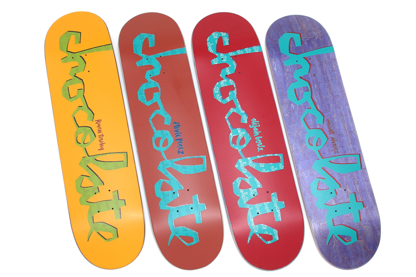 写真左から、レイヴン・ターシー(8.25×32)、スティービー・ペレズ(8×31.875)、イライジャ・バール(8.25×32)、ヴィンセント・アルヴァレズ(8×31.5)。すべて¥10,260