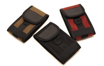 PHONE POUCH。写真左から、Ranger/Black、Black/Black、Brick/Black(W8 H15cm)。すべて¥2,700