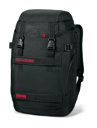 デッキを装着するベルトに配置されたDakine、Thrasher両ブランドのタグがテンションを高めてくれる。