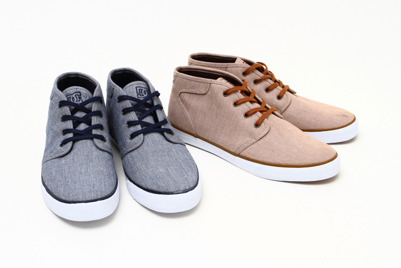 タンにあしらわれたDCのロゴ刺しゅうがアクセントになっているStudio Mid TXモデル。左からC08、DNWカラー。各色ともに¥6,825