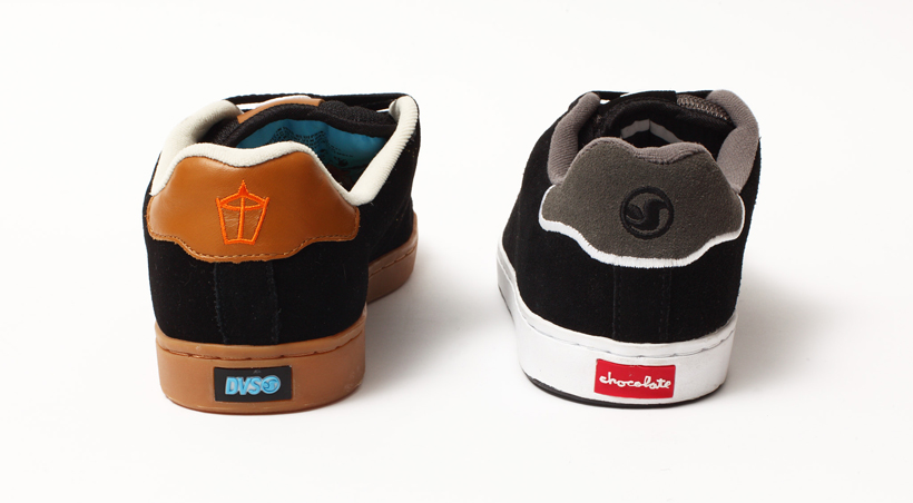 DVSから、それぞれChocolateとBlueprintとのコラボシューズがリリースされる。