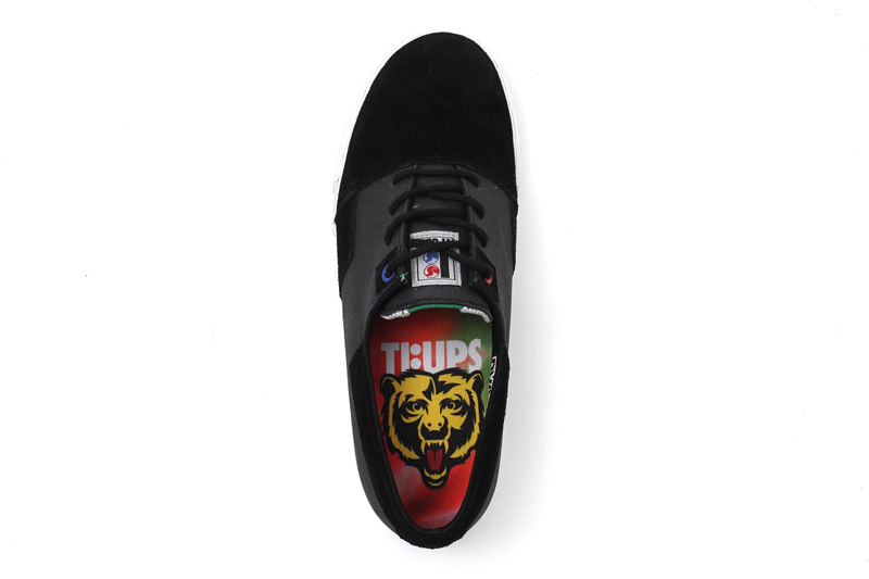 タンには両ブランドをモチーフにしたタグが入り、インソールには大胆なタイダイ柄を採用。グリズリーのイラストも主張する。