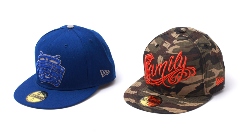 BボーイのマストアイテムであるNew EraのBBキャップはもちろん外せません。左から、ラジカセのロゴが大きくフロントにフィーチャーされたBBキャップ¥5,985、コットンリップ素材のカモ柄の記事にオレンジ色のロゴ刺しゅうが映えるBBキャップ¥6,825