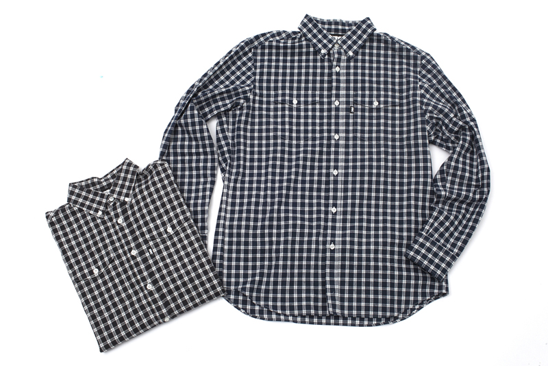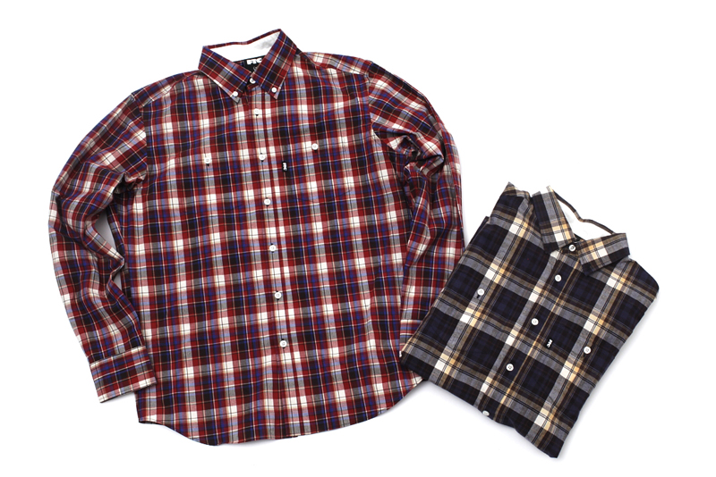 両胸のフラップポケットが特徴的なデザイン、コーディネートを爽やかに演出するギンガムプレイドB.D シャツ。各色ともに¥14,490