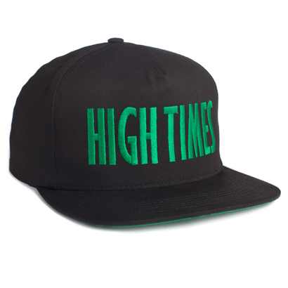ブラックボディに大胆にHIGH TIMESのロゴ刺しゅうが施されたスナップバックキャップ。¥5,250