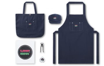 JBSオーナー小林氏のためにデザインされたKHUFのロゴを中心に、エプロンや灰皿など充実した小物類を用意。