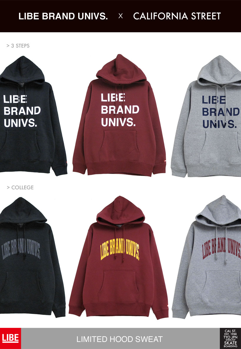 来年に創業25周年を迎える代官山の老舗スケートショップ California Streetが森田貴宏が手掛けるアパレルブランド、LIBE BRAND UNIVS.に別注したフーディがリリースされた。