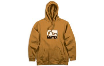 デーウォンのアイデアによる初期のMatixロゴをプリント。写真左から、Corporate Hood ¥11,664、Corporate Tee ¥5,184