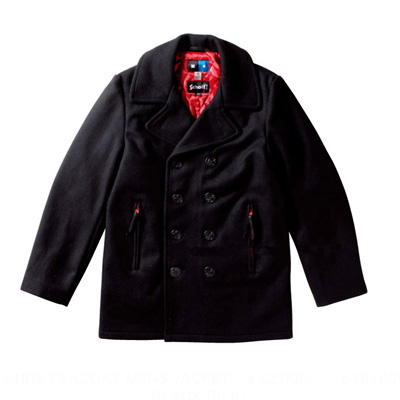 インナーのレッドが黒地に映えるメルトンウールのPコートはShottのボディを使用。