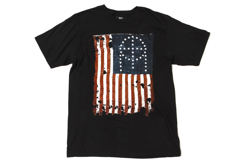 ボロボロに破れたのアメリカ国旗をモチーフにしたグラフィックが意味深なイメージを与えてくれるTee。¥3,990