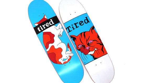 体力やテクニックが下降気味にあるおじさんファンスケート層をサポートするデッキカンパニー、Tiredの最新作が到着。 アーティストのParraが手がける脱力系グラフィックも雰囲気抜群…