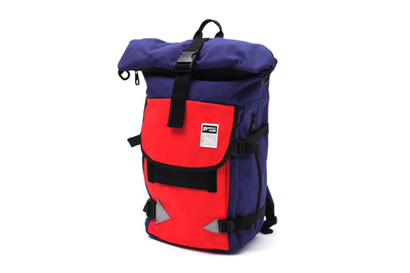 ネイビーブルー×レッドの組み合わせが目を惹くバックパック。こだわりのディテールやギミックが要所に施されながらも