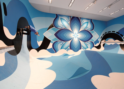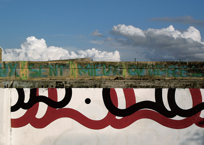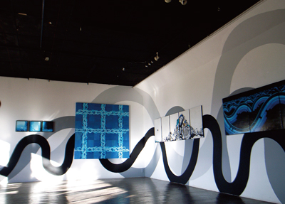 派生した自由な精神性とが混じり合い、フリーハンドで描く曲線を特徴とした独創性の高い作風で壁画作成を中心に