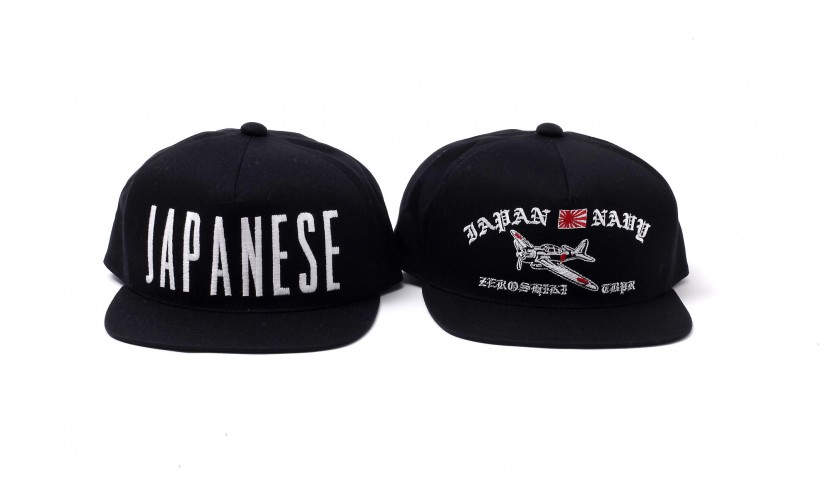 写真左から、ツバがストレートな定番の5 Panel。“JAPANESE”のシンプルで硬質なデザインが刺しゅうで演出されたモデル。
