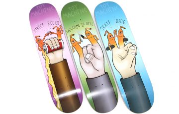 写真左から、Hand SignシリーズのStreet Beers(7.875 x 31.25)、Welcome to Hell(7.75 x 31.75)、Skate Date(8 x 31.625)。すべて¥11,880