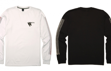 両袖に入った柄のプリントが存在感あるロングスリーブTシャツ。胸にはカイルの腕に入ったタトゥーのデザインを配置。VLCM × Kyle L/S Tee 各色ともに¥5,292