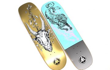 写真左から、Goathead Gold(8×32)、Cetus Teal(8.25×32)。ともに¥10,800