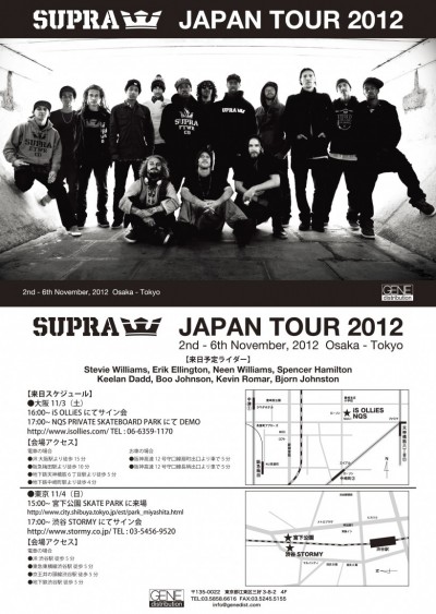 11月にはSupra Team(スティービー・ウィリアムス、エリック・エリントン、ニーン・ウィリアムス、スペンサー・ハミルトン、キーラン・ダッド、ブー・ジョンソン、ケヴィン・ローマー、ビヨーン・ジョンストン)とEmericaのPop-Up Storeでジェリー・スーが来日予定と今後も盛りだくさん。