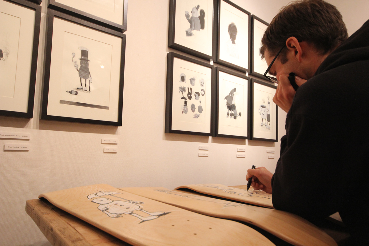 クロージングブランド、RVCAのANP(Artist Network Program)の一員として活動するアーティストであるアンドリュー・ポミエが来日を果たした。ポミエといえば、洗練されたタッチと生々しさを併せ持ったペインティングやドローイングで有名で、過去にさまざまなブランドにアートワークを提供してきた。RVCAはもちろんのこと、StussyやFourstarといったクロージングブランド。加えてMomentum、Toy Machine、Element、Girl、Heroin、Landscapeといったスケートカンパニー。ポミエの名前は知らなくとも、彼のアートワークを一度は見たことがあるはずだ。そんなポミエのアートショーが自由が丘のDiginner Galleryで開催中。これはポミエの作品を生で鑑賞し購入できるチャンス。明日13日(金)まで開催中なので、是非とも足を運んでポミエの世界観に触れていただきたい。