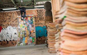 今年は3月23日から30日にかけてバーゼルワールドが開催されるのですが、CASIOのG-SHOCKブースになんと巨大なクオーターパイプが登場します。制作したのは、使い古したデッキを用い彫刻作品を手がけることで知られるHAROSHI。題は“モノリス”。デッキに切り込みを入れてフラットな状態にし、スライドトリックで傷ついたボトムが敢えてランプの表面になるように配置。サイドにはテールやノーズの形でうろこ状の模様を作り、滝を登りきった鯉が竜になるという登竜門の伝説を演出。さらにトップはG-SHOCKの初代モデルの形のタイルやデスボックスを配し、プールコーピングも設置。