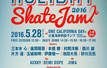 毎年5月最終週の週末に神奈川県藤沢市の辻堂海浜公園で行われるアメリカンカルチャーをコンセプトにしたネコ・パブリッシング主催のイベント、One California Day。そしてその会場である辻堂海浜公園から国道134号線を渡った辻堂海岸にミニランプを設置して行われるのがHoliday Skate Jam。