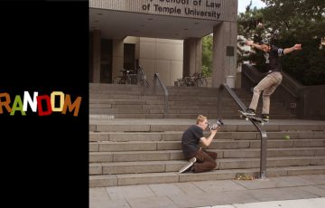 日本のスケートビデオやミニクリップを観ていると気になることのひとつ。それはやたらと「フィルマーが映りこむ」ということ。海外のビデオではほとんどないんですが、日本ではその傾向があるように思います。よくあるパターンとしてハンドレールやステアでのダブルアングル。1回のメイクで寄り(フィッシュアイ)と引き(ロングレンズ)の2カットをゲットしたいというのはわかるんですが、レンズの特性上どうしても引きの映像にはフィッシュアイを構えたフィルマーが映り込んでしまいます。「フィルマーもパートを作る仲間なんだから映ってなにが悪いんだ」なんて意見もあるかもしれませんが、個人的にはやっぱりフィルマーは裏方に徹していたほうがクールだと思います。