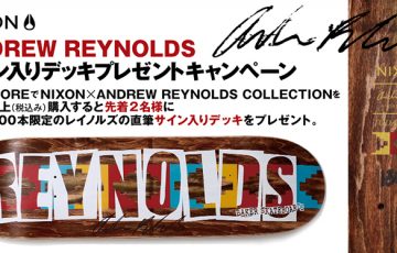 唐突ですが、本日からVHSMAGのオンラインストアであるHI8STOREにおいて、先着2名様限定のNIXON×REYNOLDSキャンペーンがスタートします。そのキャンペーンとは、HI8STOREでNIXONのREYNOLDS COLLECTIONを税込みで5万円以上購入した方に先着でレイノルズのサイン入りデッキをプレゼントする、というもの。