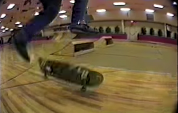 そして、ノーリーフリップを初めて動画で記録したのが’90年リリースのNew Deal『Useless Wooden Toy』。地面でバウンスしながらデッキが見事回転しております。ちなみに翌年リリースされた『Quiet Storm』という作品でも同トリックを進化させてバンクで披露。『Useless Wooden Toy』のアリ・ミルズのパートは、世界初のノーリーフリップだけでなく、ノブ付きのレールでのボードスライド、フラットでのフロントフリップやFs 360ポップショービットなど、おそらく当時のNBDと思われるトリックも連発。